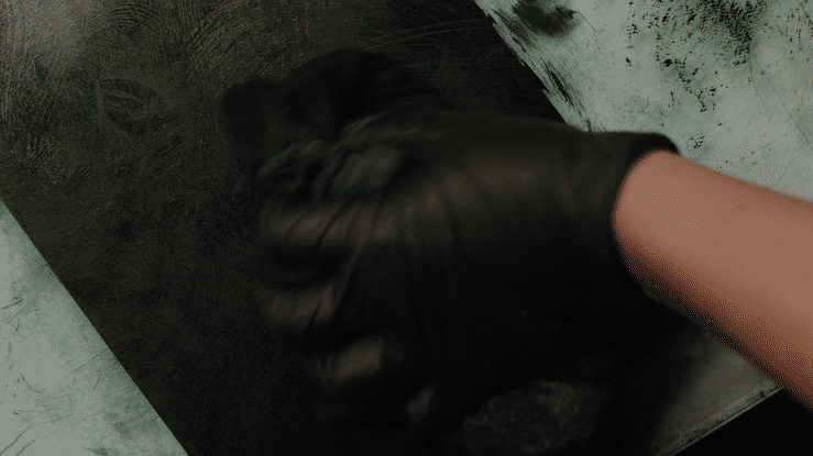 Thanks to mechanical pressure, the ink is transferred from the engraved lines to the wet paper, creating the work of art.